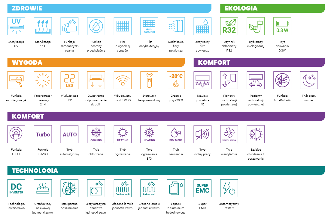 - Cena zawiera jednostkę zewnętrzną, jednostkę wewnętrzną, pilota bezprzewodowego oraz Moduł